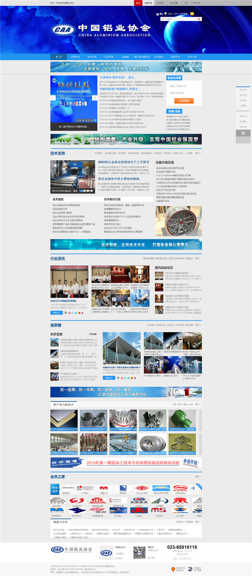 Project Description 中国铝业协会是由中国国内主要从事铝合金铸造、板、带、箔、管、棒、型材、锻件等企业组成的行业协会组织,协会由国内具有一定规模和影响力的企业发起,已有三百多家会员企业,目前还有很多企业踊跃希望加入,协会现有会员企业年销售额1000多亿元人民币,协会会员企业分布在国内华东、华南、西南、环渤海、东北、胶东半岛等中国经济活跃地区;产品涵盖航空航天、兵器装... Official website address 孝感http://www.caa2014.com I want to share